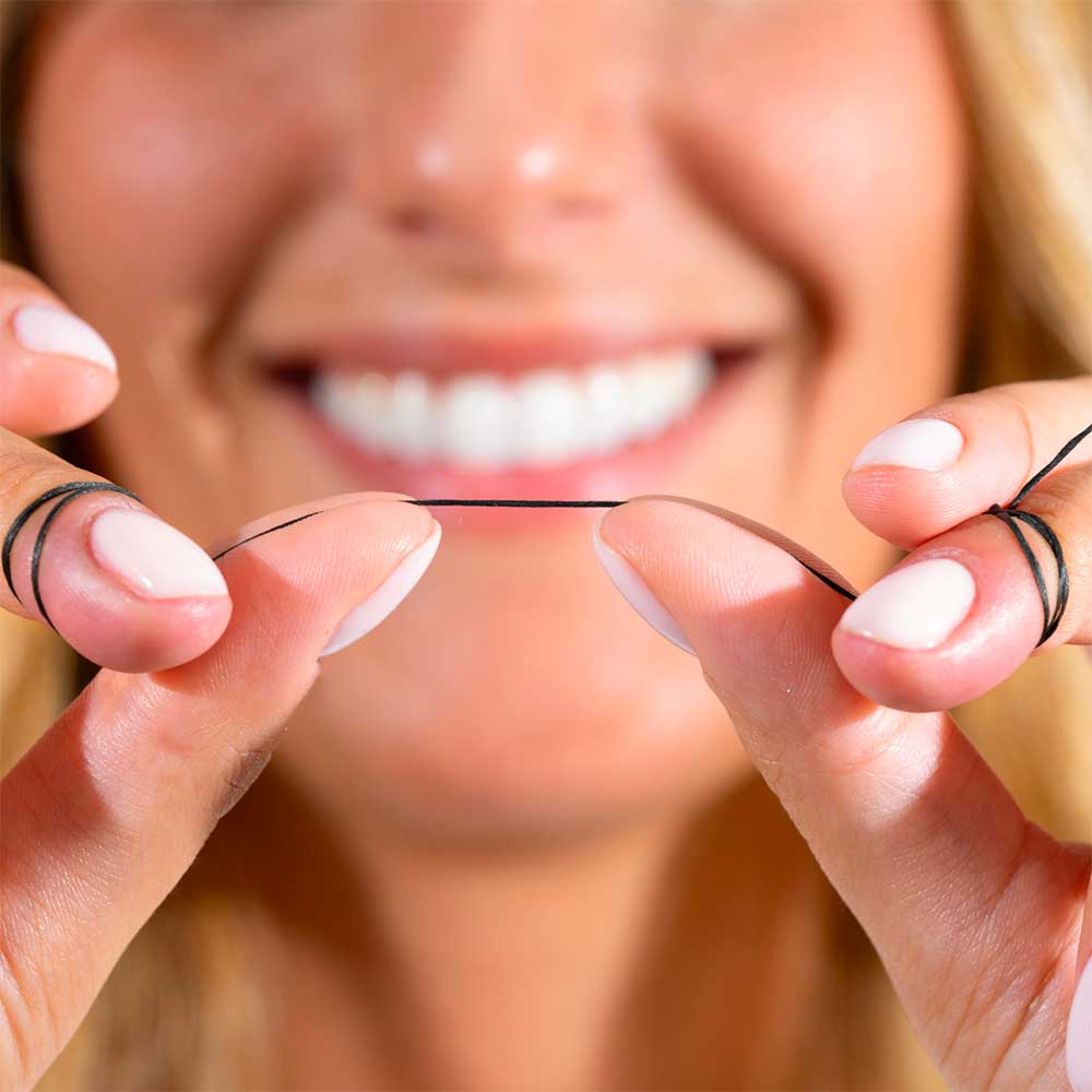 Codzienne nitkowanie zębów zapobiega osadzaniu się kamienia nazębnego, stanom zapalnym dziąseł, próchnicy i nieświeżemu oddechowi.
