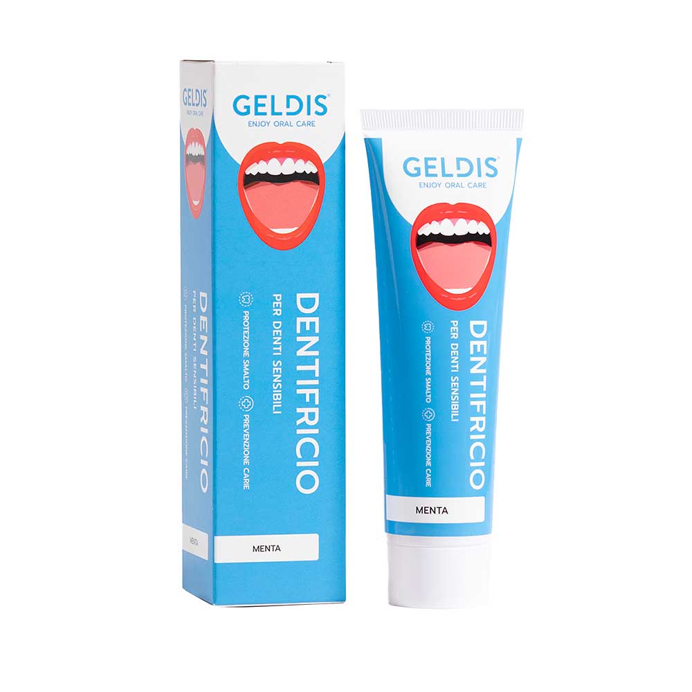 Pasta do zębów Geldis dla wrażliwych zębów została opracowana w celu złagodzenia problemu nadwrażliwości zębów, zapobiegania powstawaniu próchnicy i utrzymania naturalnej bieli zębów.