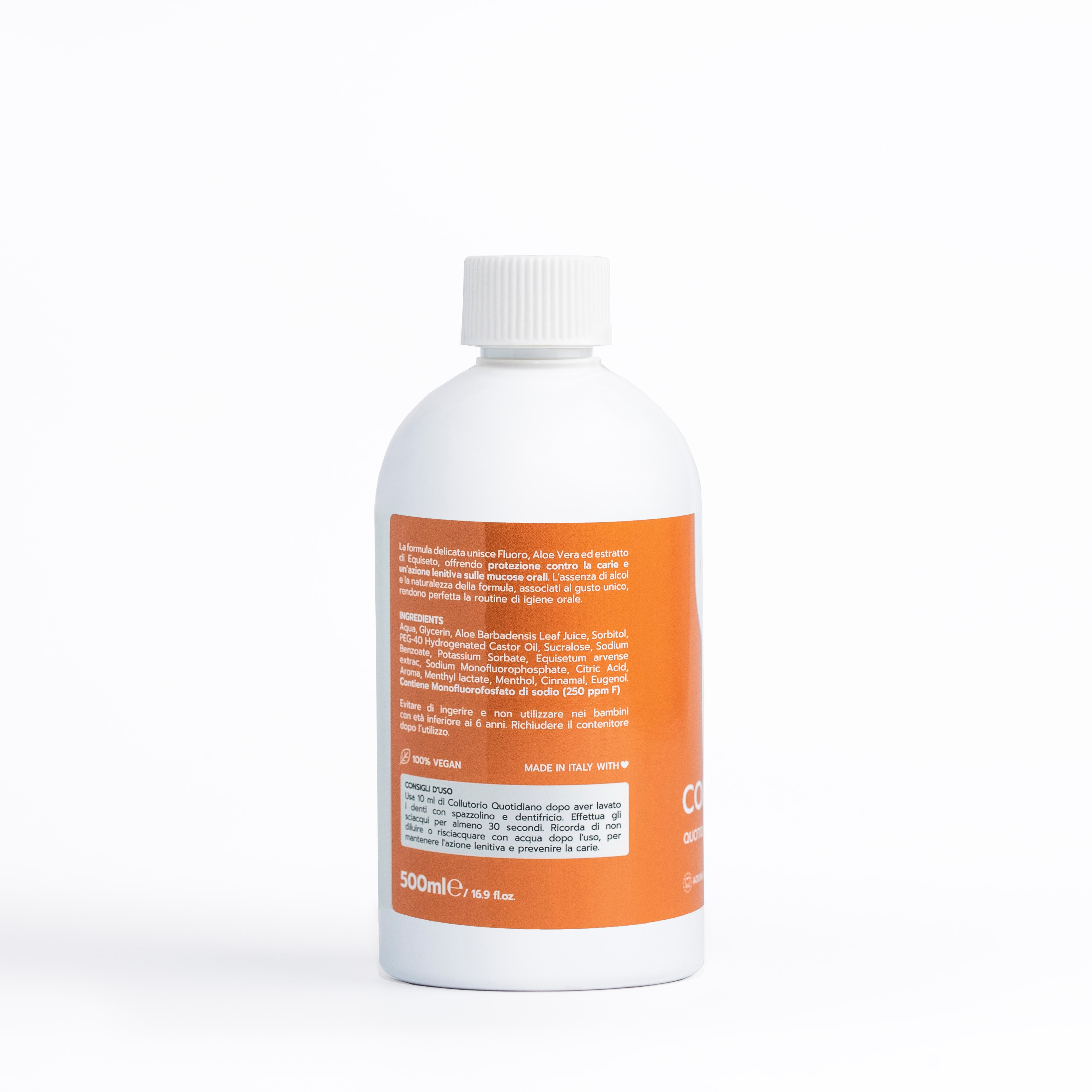 Użyj 10 ml płynu do codziennego płukania jamy ustnej po umyciu zębów szczoteczką i pastą. Płucz jamę ustną przez co najmniej 30 sekund. Pamiętaj, aby nie rozcieńczać ani nie spłukiwaćpłynu wodą po użyciu, aby zachować działanie łagodzące, zapobiegać próchnicy i chronić szkliwo.